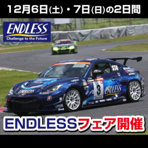 ENDLESSフェア開催!! 年末恒例のエンドレスフェア!今回も各製品特価でご案内します!製品の品質の高さはレーシングカーに装着されている事から説明するまでもないですよね!高品質のブレーキパッドは何もサーキット...